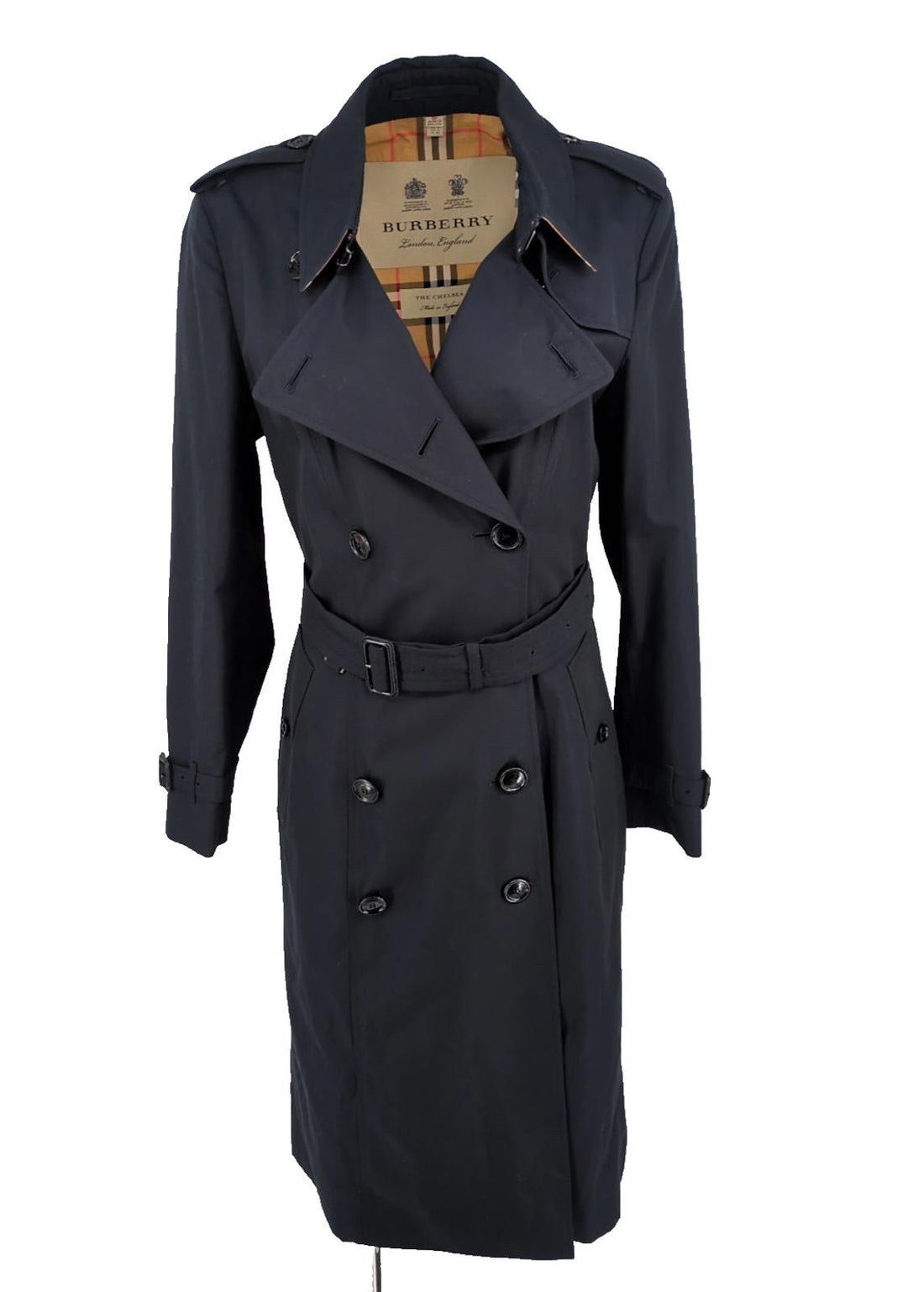 Burberry Chelsea Trench CoatMightnight NavyLong LengthBurberry embossed buttonsNova check interior lining2 external pocketsMade in EnglandGender...