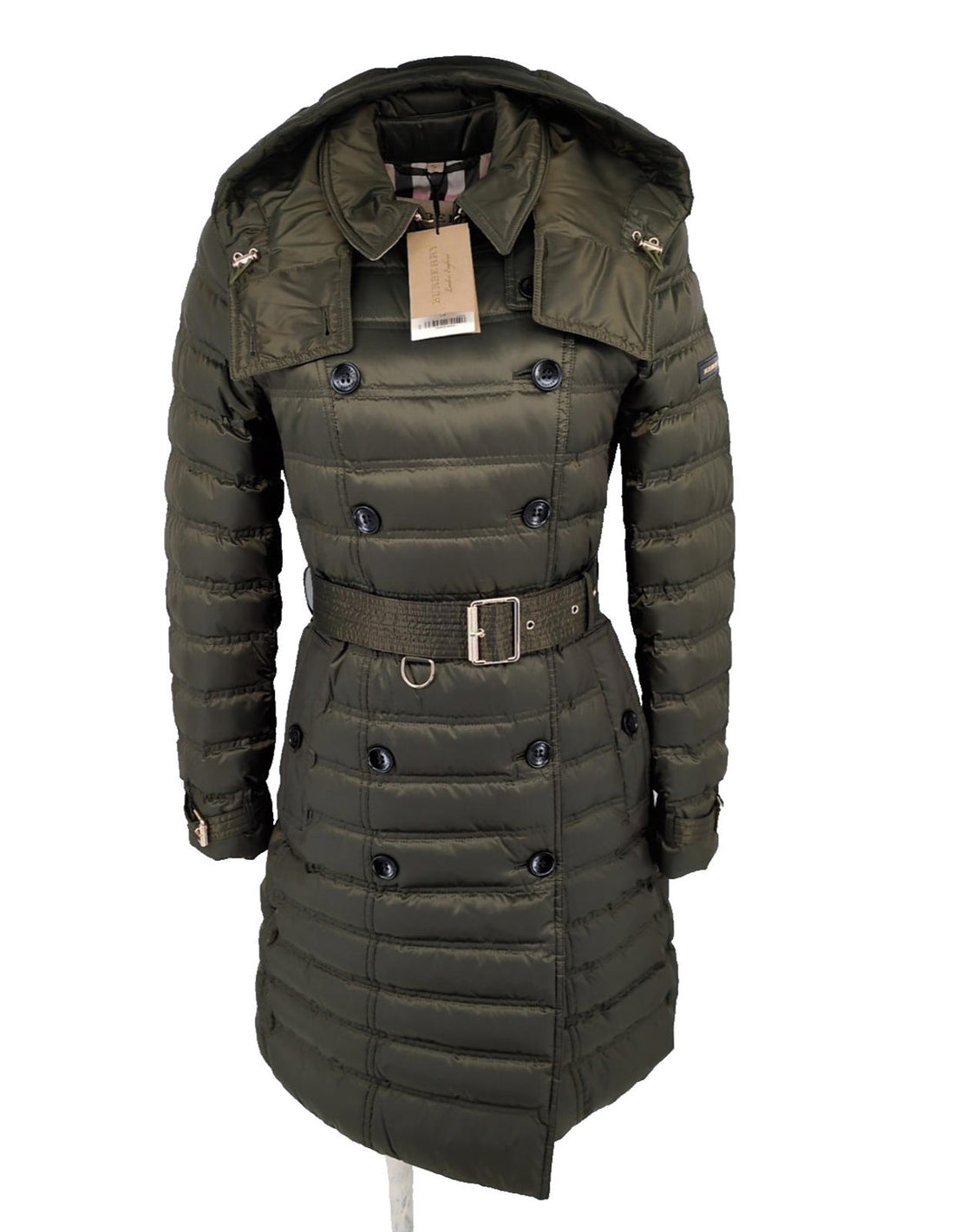 Burberry Womens Puffer Coat Jacket Medium M Olive Down
