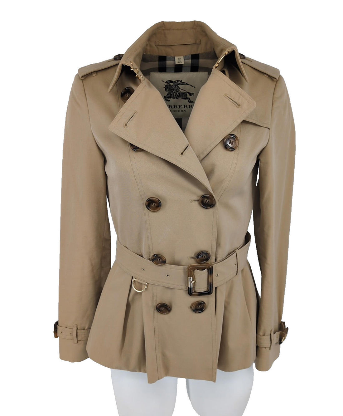 Burberry Kensington Short Length Trench CoatShort KensingtonBurberry embossed buttonsNova check interior lining2 external pocketsMade in...