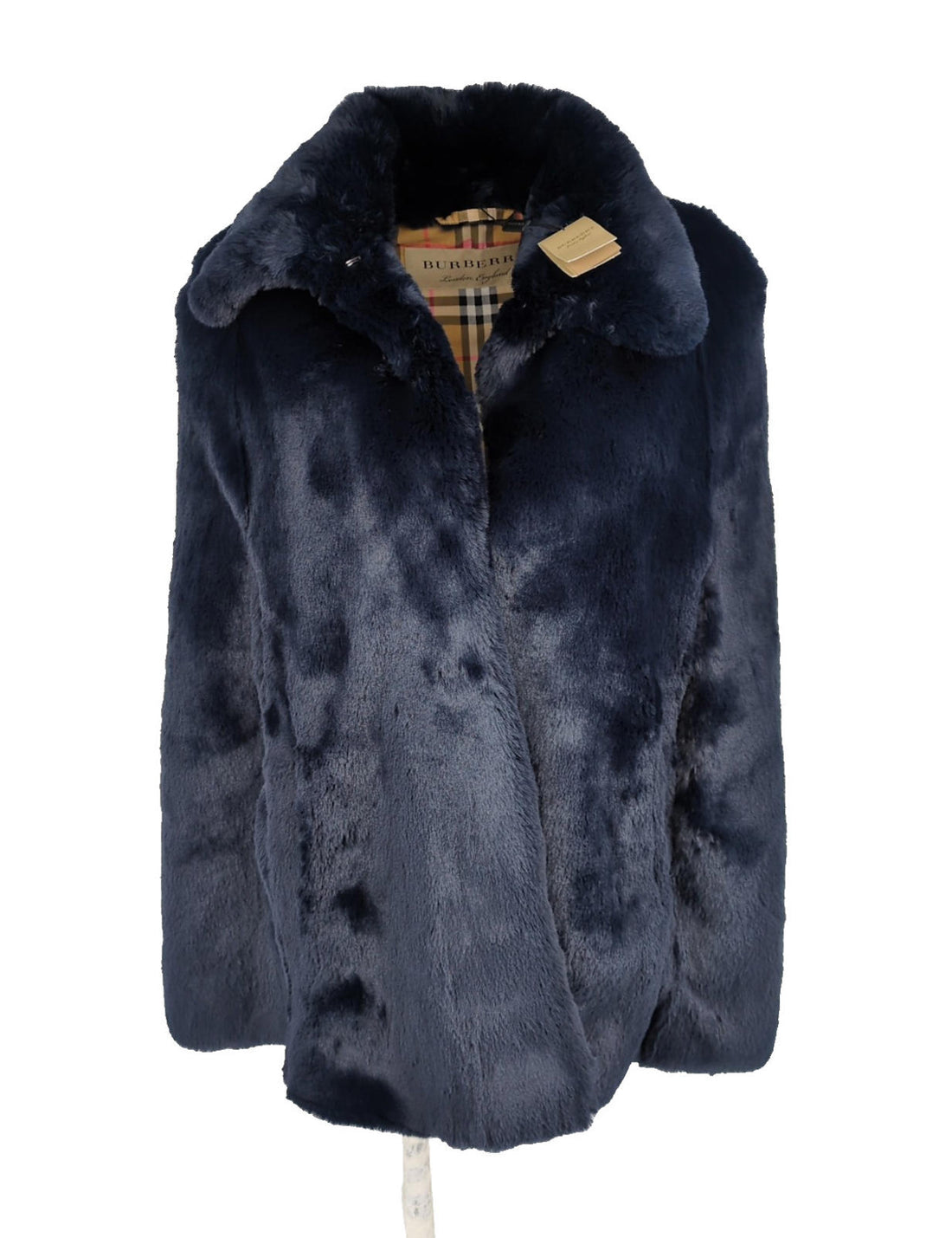 Burberry Cape Faux Fur Italy BNWT One Size XS S Small Navy Nova Check