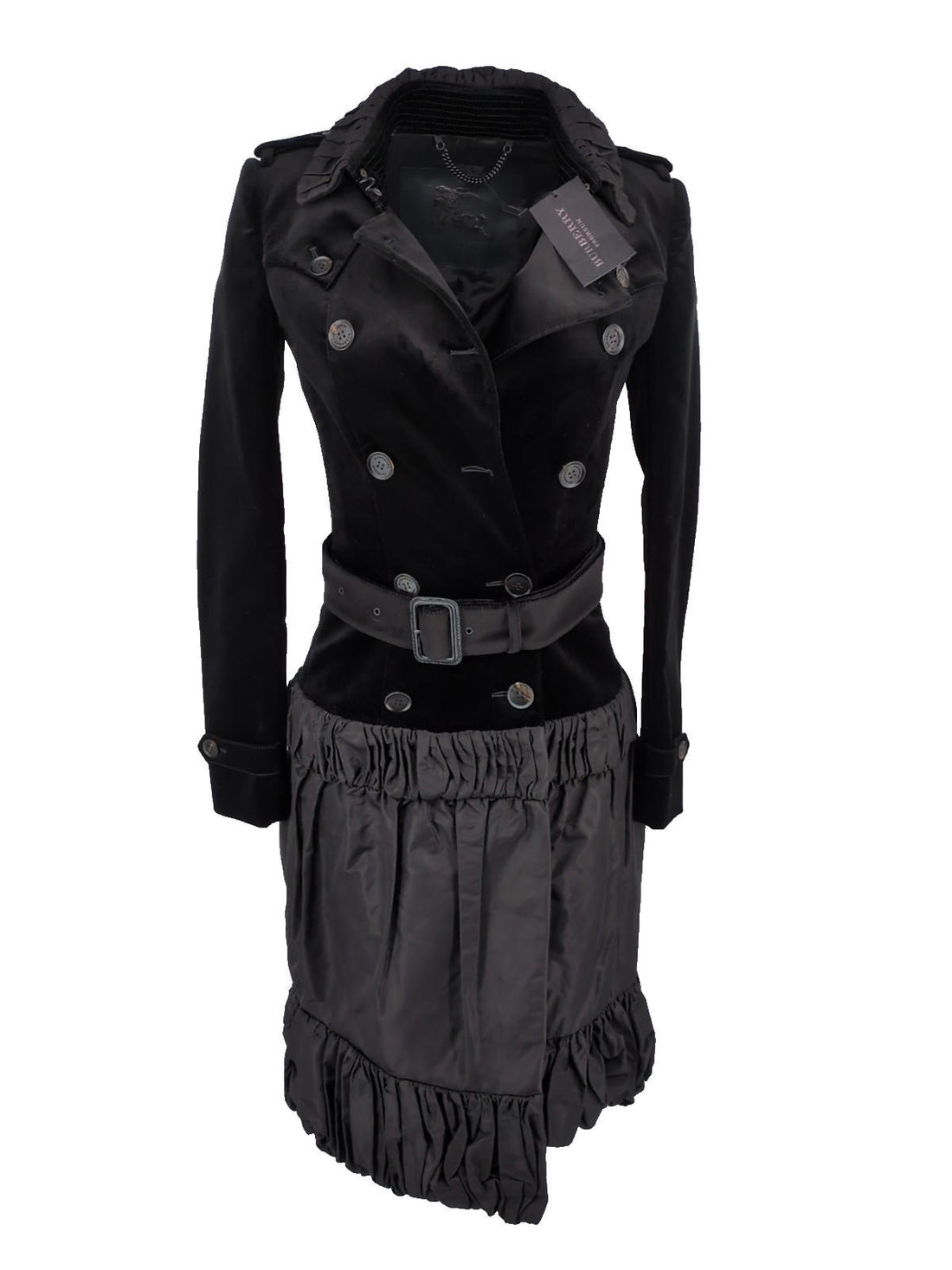 Burberry Trench Coat UK 4 Runway Italy Black IT 36 S Velvet XS XXS Prorsum