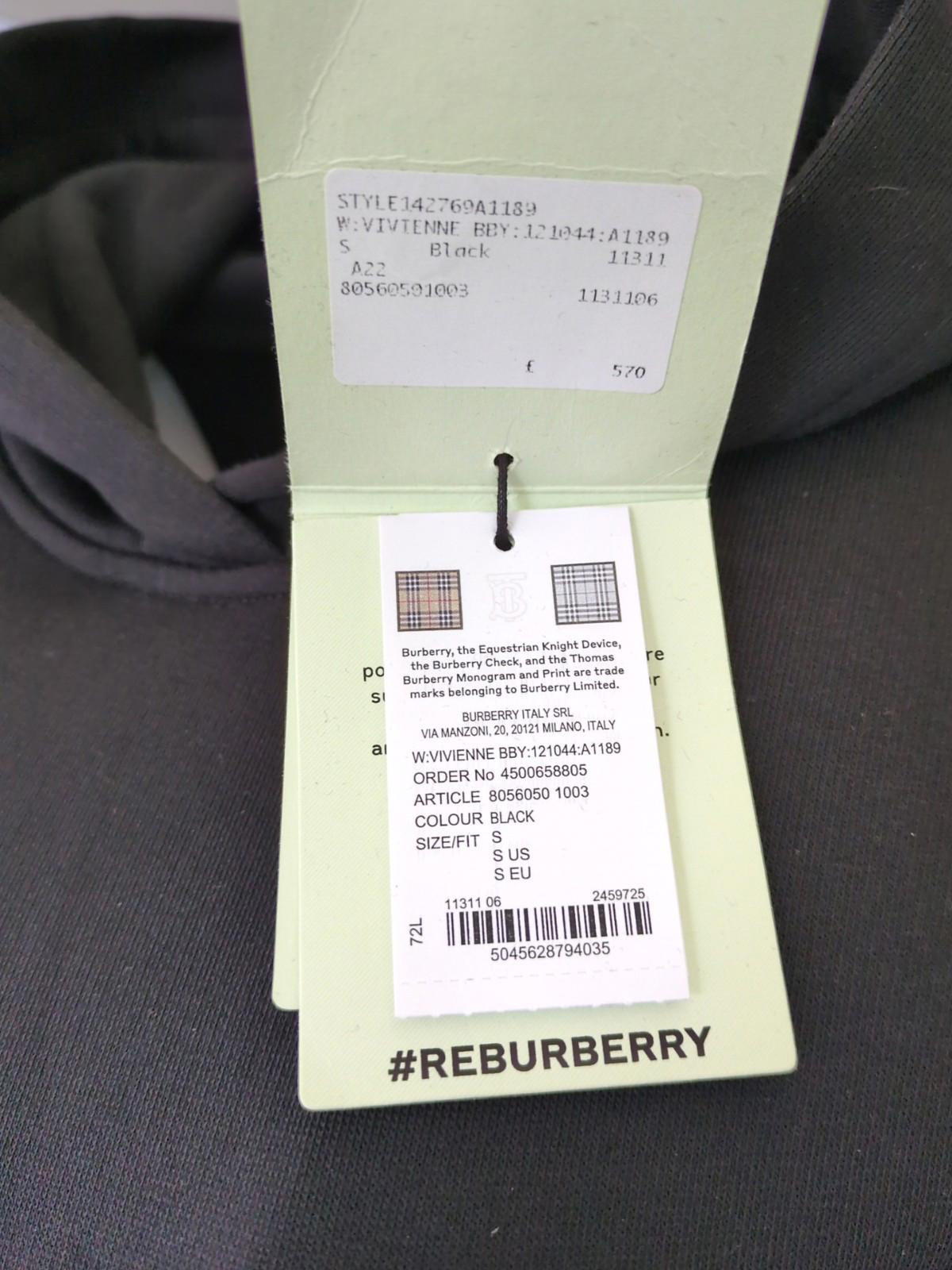 Burberry Black Hoodie Small 100% Cotton Ladies NWT