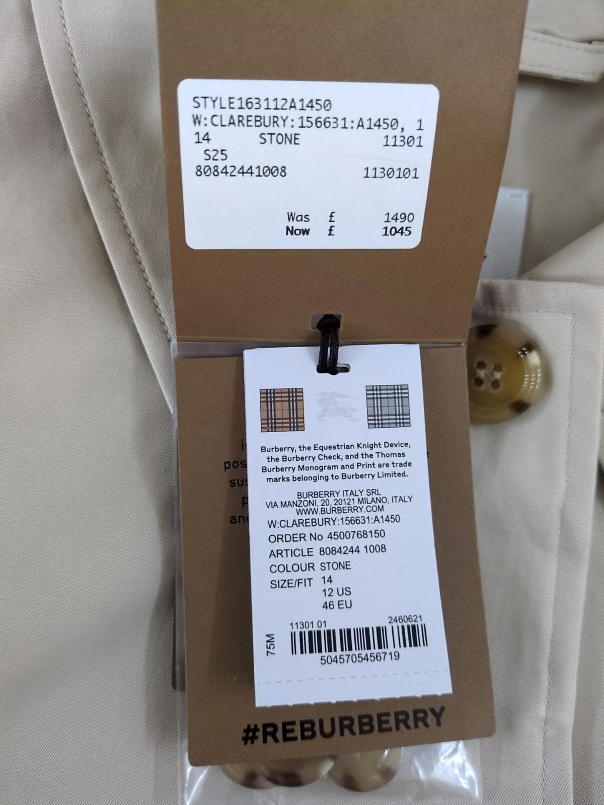 Burberry Car Coat UK 14 Clarebury Stone US 12 IT 46 Large RRP £1490 New Trench