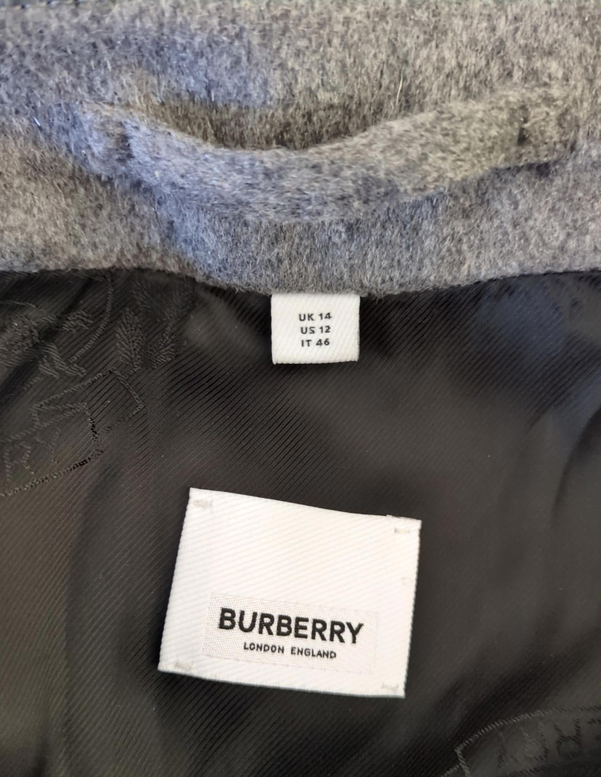 Burberry Cashmere Car Coat UK 14 USA 12 IT 46 L Grey Nova Check Trench Dayrell