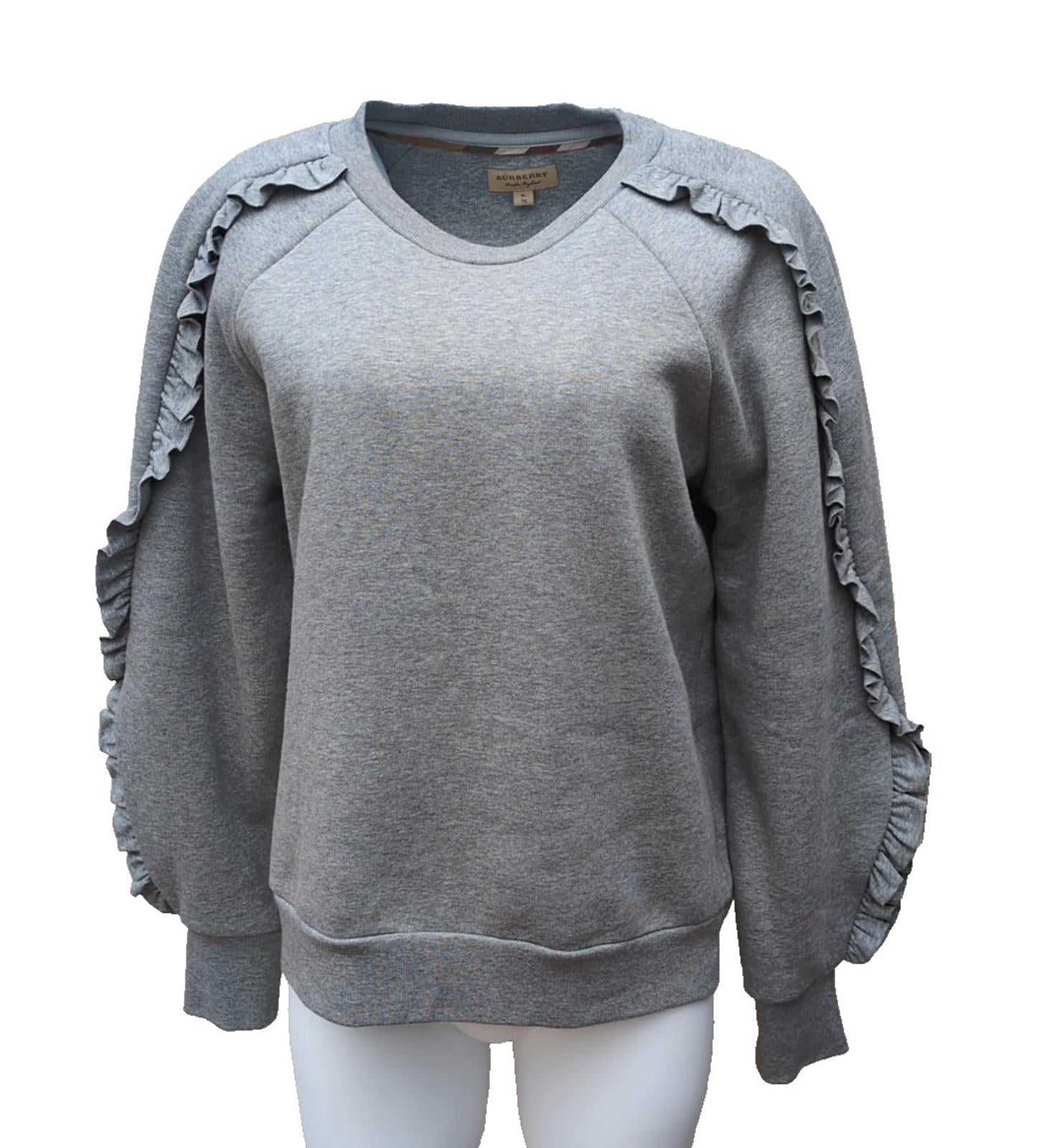 Burberry Cotton Blend Jumper Sweater XL L UK 14 USA 12 Grey Frill Detail