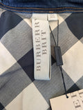 New with Tags. Some slight blue colour transfer under the collar and to the interior Burberry label from storage.