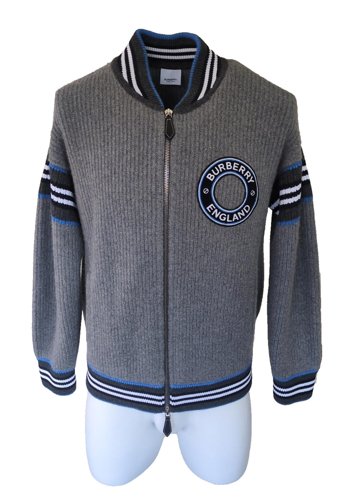 Burberry Jacket Grey L Large IT 52 Logo Graphic Wool Cashmere Bomber