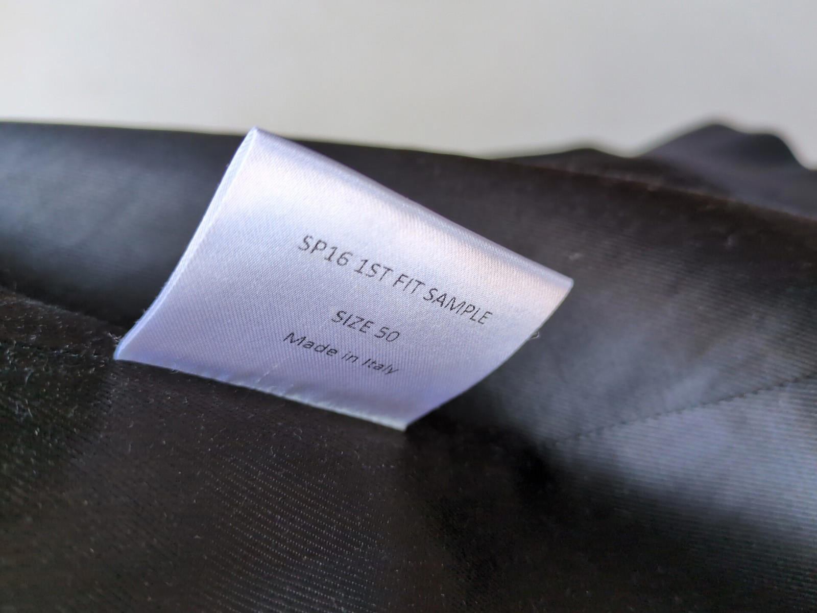 This has been looked at for marks, stains, holes, rips, tears, lining issues, colour transfer, obvious signs of wear etc. The sizing tag has some discolouration. Otherwise excellent.