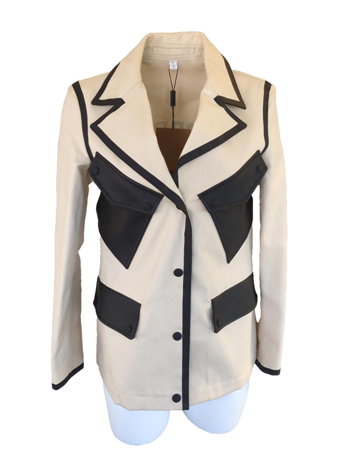 Burberry Jacket UK 8 Runway Italy Logo Canvas Cream Black Blazer US 6 IT 40 S