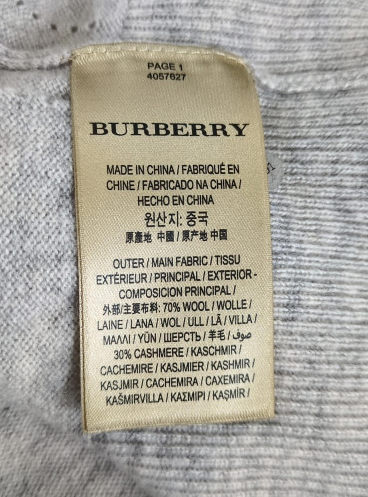 Burberry Jumper Wool & Cashmere Grey Large L UK 12 USA 10
