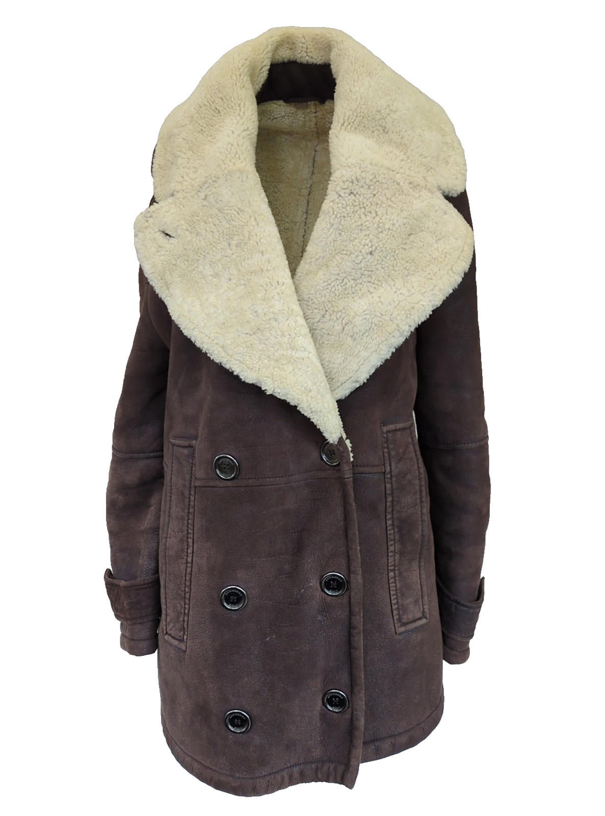 Burberry Shearling Coat UK 6 USA 4 IT 38 Suede Leather Brown Aviator
